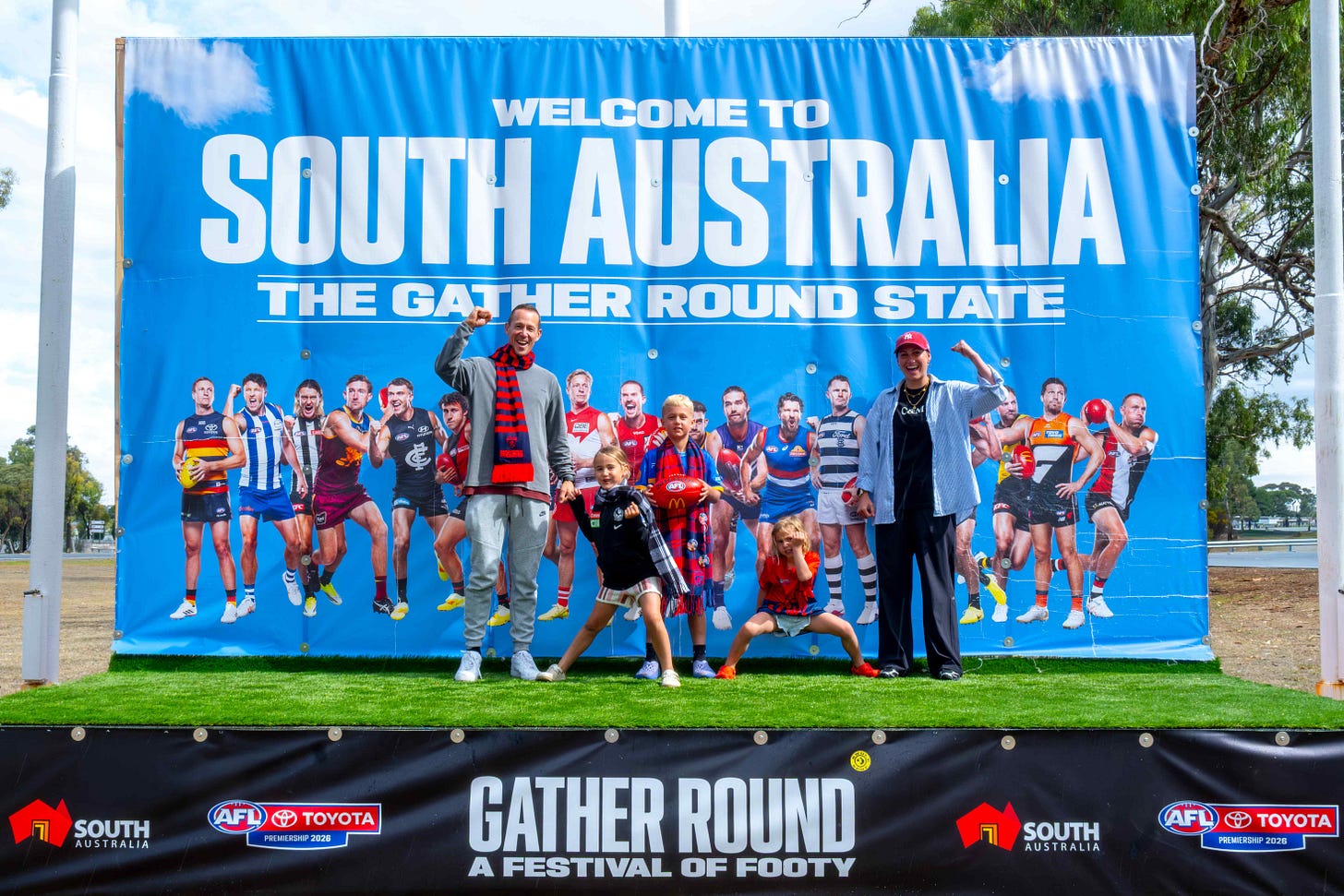 On the ground, fans entering regional towns, from Bordertown to Robe, were greeted with family-themed AFL-themed activations, photo moments and outdoor ad-campaigns.