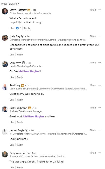 3 x ‘Happy Hour’ sports industry networking events delivered in Melbourne & Sydney