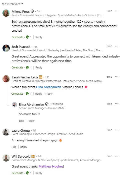 Our Happy Hour Sports Industry Networking Events (delivered in partnership with MEE Agency) bring together a mix of industry professionals from across the sports ecosystem including rights-holders, brands, agencies, media, government, education and suppliers.