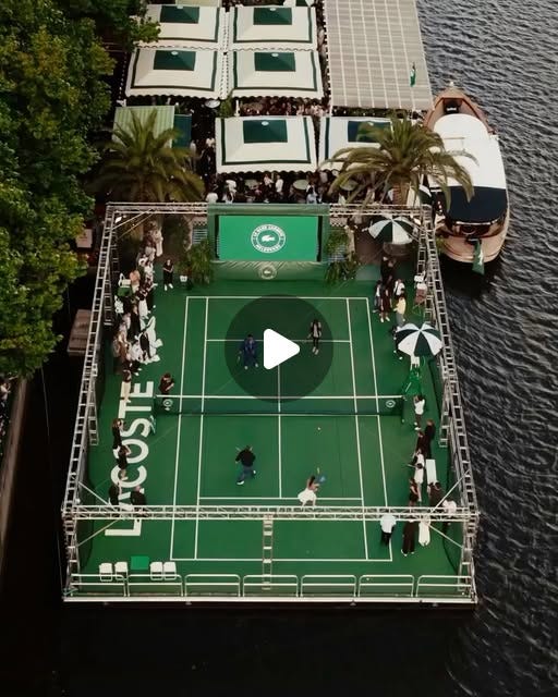 Partnering with Afloat Melbourne, Lacoste launched ‘Le Club Lacoste’ - a floating, sun-soaked tennis-charged oasis on the Yarra that includes, a bookable floating tennis court, gig screens to watch the AO live, bespoke food & drink, DJs, ambassador appearances, a pop-up retail store.