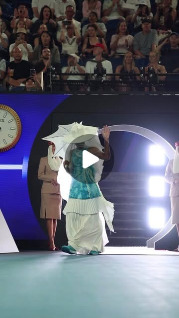 ICYMI - Naomi Osaka entered Rod Laver Arena during prime time on Nine, wearing floating custom creations from London-based couturier Robert Wun and Nike.