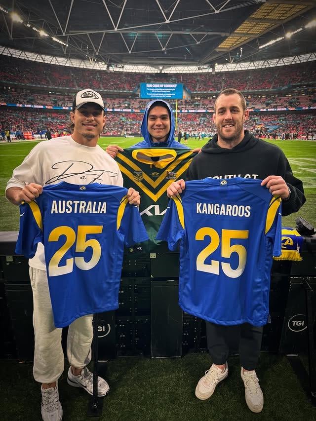 Kangaroos players linked up with the LA Rams at Wembley Stadium in London for a jersey exchange