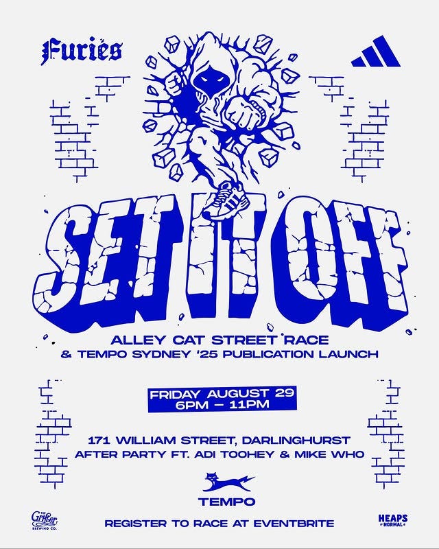 Adidas x Furies staged the ‘Set It Off’ street race ahead of the Sydney Marathon - a very Sydney-centric race that leaned on local knowledge to navigate and win. Followed by an after-party.