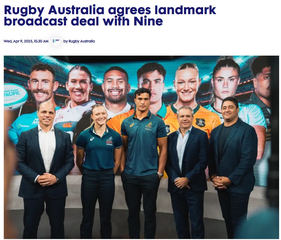 Rugby Australia then secured a five year broadcast extension with Nine to 2030 in April 2025, albeit with a seemingly modest increase in commercial return to approximately $43 million per annum.