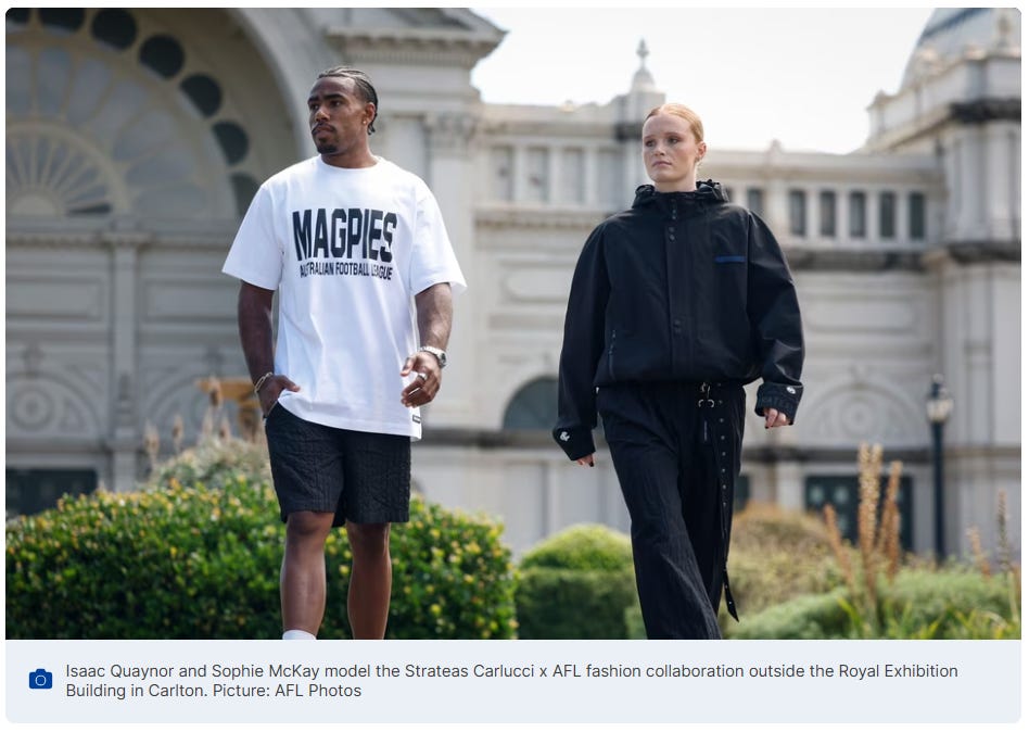 But, with even the AFL now featuring in fashion and the players themselves now taking the runway, it’s a clear signal that these worlds aren’t just colliding—they’re redefining each other’s currency.