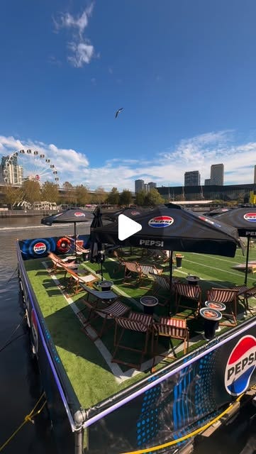Pepsi launched a 200 square metre floating football field, ‘The Pepsi Pitch’, on the Yarra at The Wharf Hotel in Melbourne - giving fans a unique Super Bowl LX experience
