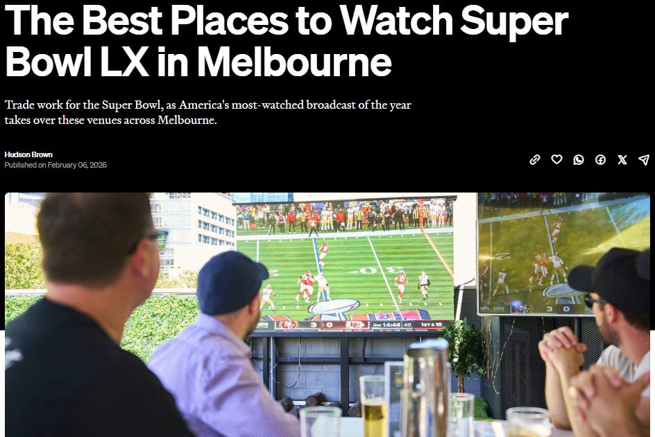 The fact that there’s no commercial deal in place for pubs to show the ongoing Men’s T20 World Cup, or the sheer number of Super Bowl watch parties across Australia that didn’t have any formal brand involvement, are cases in point.