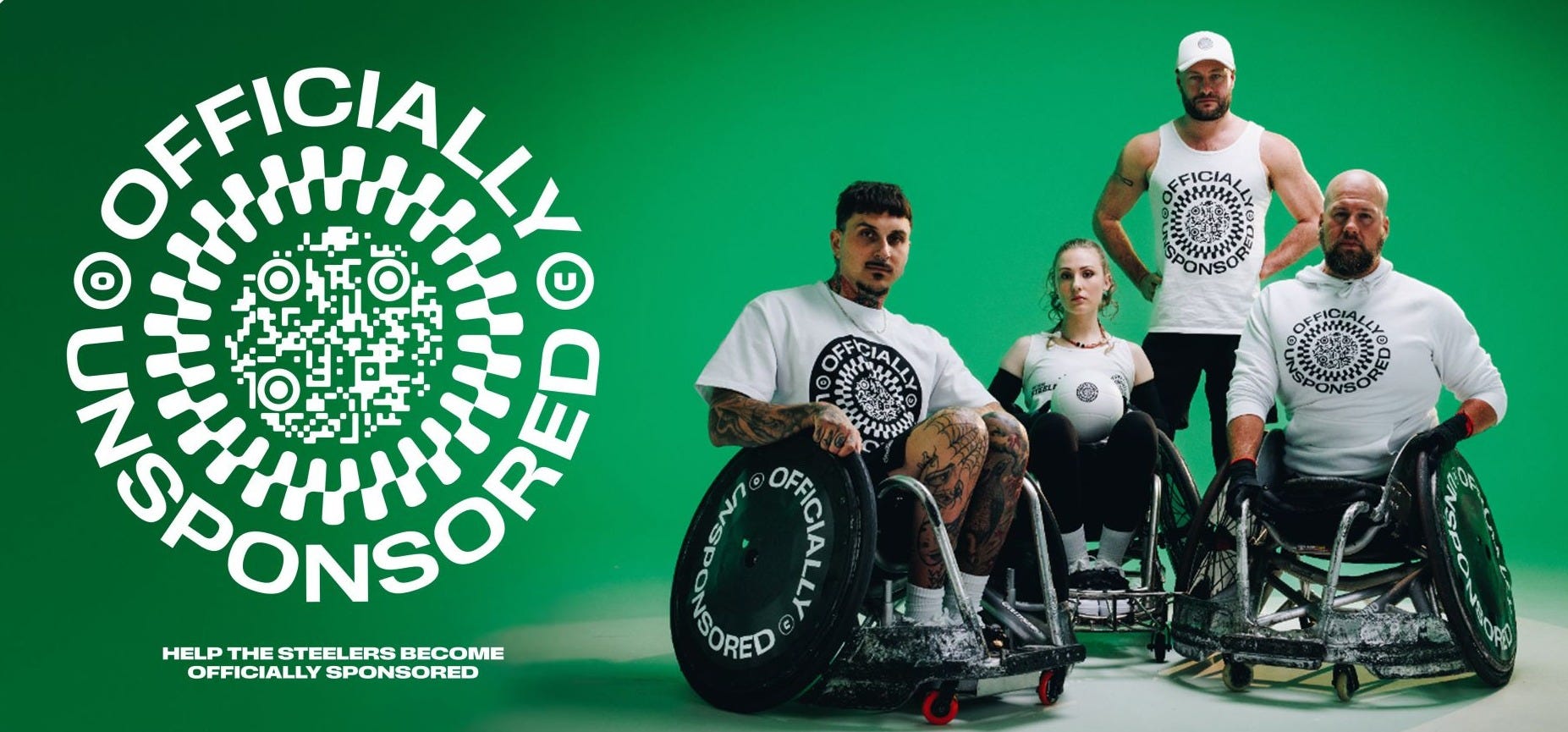 Australian Steelers wheelchair rugby team (currently ranked no 2 in the world) launched a new campaign, in partnership with Ogilvy, called ‘Officially Unsponsored’ - The team’s green and gold uniform has been replaced with an all white kit representing a blank canvas (devoid of sponsorship) and a new QR code logo has been added, directing potential sponsors to a ‘SponsorSHOP’