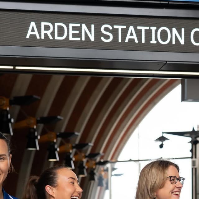 Premier Jacinta Allan, Deputy Premier Ben Carroll and Minister for Transport Infrastructure Gabrielle Williams joined AFLW North Melbourne players at Metro Tunnel’s Arden Station ahead of its opening